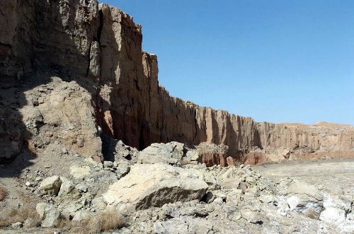 图为遗址西边的建设控制地带、相关地域建起了砖厂、围堰湖等,严重影响了水洞沟遗址的原有风貌靠近明长城边的水洞沟遗址剖面土层大块塌陷从黄河上游的横城古渡乘船东渡,登上岸就进入了宁夏灵武县境。抬眼望去,长城犹如一条匍匐在沙丘上的巨龙,透迤西下,消失在浩瀚的毛乌素沙漠之中。这里接近鄂尔多斯台地的南部边缘。在长城西南、与长城并行的水洞沟北面的一处断崖,就是举世闻名的宁夏古人类文化发祥地——水洞沟遗址。
