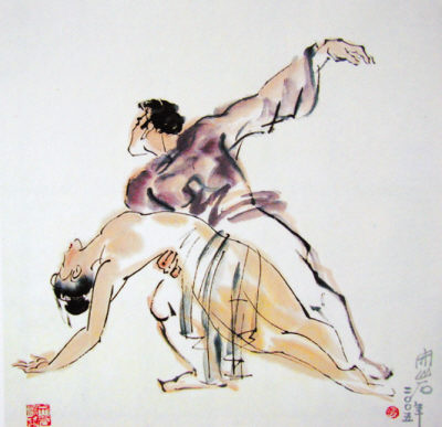 说起对水墨谐趣画的探索和创作,我想起两个人。一个是大家方成,一个是陇上大家裴广铎。方成可以说是当代水墨谐趣画的推动者,他画的钟馗、李逵、济公、布袋和尚、市井人物等众多题材的水墨谐趣画,既有水墨艺术性,又有漫画艺术性,深受世人的垂青。陇上大家裴广铎在世时,在其丰富的艺术创作田园里,水墨谐趣画也是他倾心创作的一个品种。他创作了不少水墨谐趣画,《回娘家》、《朋友》都是极具地方特色、民俗风情和水墨艺术的代表作……