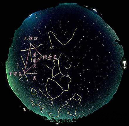 作为七夕传说的蓝本,牵牛织女及七月初七首先牵扯到上古天文历法及星祀×。牵牛织女在具有人格意态前首先是作为二星出现,按照上古神话系统发展规律,先从“星到神”,而后“神到人”,牵牛星又名“河鼓”,二十八宿之一,玄武七宿的第二宿,有星六颗(正好是希腊神话中的摩羯座六星);与银河另一端的织女星(即天琴座三颗主星)遥遥相望。牵牛星被我们农耕的华夏民族祖先的视为谷物神,织女则传说是天帝之女桑神,谷物神和桑蚕神都是我们这个农耕民族的先民极为看重的神祗。七夕之“七”的记日法是夏历的习惯,上古人们祭祀常常选在一七和二七,祭牲仪品数量也常常为七的倍数。