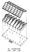 结构形式 从远古到汉代的木结构的形式迄今未能完全了解,仍在探索中。从半坡遗址到商代盘龙城遗址、西周周原建筑遗址、汉代礼制建筑、石阙等,虽已有复原研究,但还都未能得出系统的结论,只能看出一些脉络:①殷商的墓室均用井干式结构,后代虽不普遍使用,但在木结构发展史中却有重要作用。②自商代至战国宫殿遗址中已发掘的平面柱网布置,均纵向成行列而横向常不成行列。据此可推断屋架构造,系以纵架为主,直至汉代仍有应用,故纵架应是早期普遍使用的构造形式。后来,辽金时期偶然也有使用纵架承托横架的构造,那是经过改进提高的纵架。③自西周开始已用栌斗作为结合柱、梁的构件,以后逐步发展成栌斗上用拱、昂等组合成铺作(见斗拱)的复杂构造形式。
