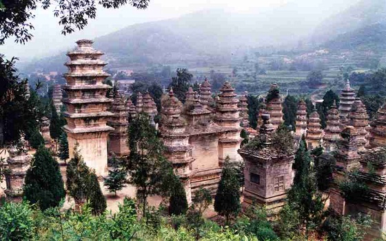 少林寺的历史久远,始建于北魏太和十九年(495年)。32年后,印度名僧菩提达摩来到少林寺传授禅宗。以后,寺院逐渐扩大,僧徒日益增多,少林寺声名大振。达摩被称为中国佛教禅宗的初祖,少林寺称为禅宗的祖庭。禅宗修行的禅法称为“壁”,就是面对墙壁静坐。由于长时间盘膝而坐,极易疲劳,×们就习武锻炼,以解除身体的困倦。因此传说少林拳是达摩创造的。少林寺在唐朝初年就扬名海内。少林寺和尚惠场、昙宗、志坚等13人在李世民讨伐王世充的征战中,助战解围,立下了汗马功劳。唐太宗李世民后来封昙宗和尚为大将军,并特别允许少林寺和尚练僧兵,开杀戒,吃酒肉。寺内有一块《唐太宗赐少林寺主教碑》,记述了这一段历史。由于朝廷的大力支持,少林寺发展成驰名中外的大佛寺,博得“天下第一名刹”的称号。宋代,少林武术又有很大提高,寺僧多达2000余人。在明朝,少林寺到达鼎盛时期,从清朝开始衰落。少林寺在鼎盛时期,7进院落,规模很大。可惜在1928年,军阀混战,军阀石友三火烧少林寺,把天王殿、大雄宝殿、法堂和钟楼等主要建筑统统毁于一炬;许多珍贵的藏经、寺志、拳谱等全成灰烬。现在还存在的建筑有山门、立雪亭、千佛殿等,其他建筑正在陆续恢复中。