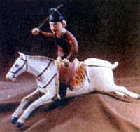 击鞠(也就是现代的马球)亦称打毬或击毬,出现在唐代。游戏者必须乘坐于马上击球,击鞠所用的球有拳头大小,球体的中间被掏空,制球的原料是一种质地轻巧且柔韧的木材,球的外面还雕有精致花纹。