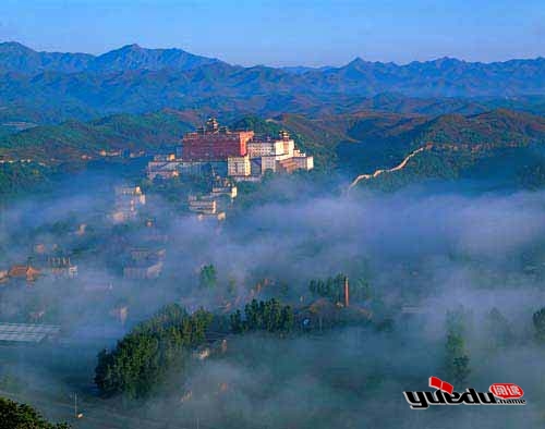 避暑山庄位于河北省承德市,原为清代皇帝消夏避暑、处理政务的行宫。它始建于清康熙年间(1662-1722年)年间,历经康熙、雍正、乾隆三朝,先后修建了89年,至1792年才最终完成。避暑山庄可分为宫殿区、湖洲区、平原区、山峦区四部分,占地面积达546万平方米,是中国现存最大的皇家园林。在避暑山庄的东面和北面,以众星捧月之势,分布着一组规模宏大的寺庙群,这就是著名的外八庙,它是清政府为安抚中国西北部蒙、藏等少数民族,加强对边疆的管理而修建的。图为仿西藏布达拉宫形制修建的普陀宗乘之庙。它由40座佛殿和僧房组成,是外八庙中规模最大的一座。