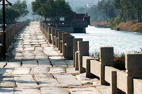 安平桥位于福建省晋江市的安海镇,安海古称安平,桥因此得名,因桥长五里,又称它为“五里桥”。安平桥是用花岗岩和沙石构筑的梁式石桥,横跨晋江安海和南安水头两重镇的海滩,始建于南宋绍兴八年(1138年),前后历经13年建成,明清两代均有修缮。目前的桥全长为2070米,桥面宽3米至3.6米,以巨型石板铺架桥面,两侧设有栏杆。桥墩用长条石和方形石横纵叠砌筑法,呈四方形、单边船形、双边船形三种形式,尚存331座,状如长虹。长桥的两旁,有石塔和石雕佛像,其栏杆柱头雕刻着雌雄石狮与护桥将军石像。整座桥上面的东、西、中部分别设有五座凉亭,以供人休息,并配有菩萨像。两边水中建有对称方形石塔四座,圆形翠堵婆塔一座,塔身雕刻佛祖,面相丰满慈善。中亭有两身护桥将军,高1.59至1.68米,头戴盔,身穿甲,手执剑,是宋代石雕艺术的精华。安平桥有“天下无桥长此桥”的美称,为全国重点文物保护单位之一。