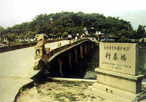 行春桥位于苏州西南6公里处,有石湖,为著名旅游景点。相传吴越争霸之时,越国名臣范蠡在灭吴后,带着西施由这里归隐太湖,故附近有镇名蠡墅。南宋著名田园诗人范成大退休后即在石湖养老,自号石湖老人。在湖东面田圃相间,水系杂错之处有一座行春桥,因为桥下洞函中不仅流过一条小河,而且几处溪流分别流经其不同的桥孔,故人称九环洞桥。桥上有重级石栏,游人可随处坐憩。