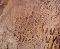 极南洞位于龙门西山最南端高处的崖壁上。它是由盛唐名相姚崇为追悼亡母刘氏所开凿的功德窟。时间大约在唐中宗神龙二年至唐睿宗景云年间(公元706—711年)。