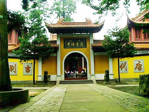 万寿禅寺位于浙江省杭州西北,天目山东南余脉的径山。创建唐天宝元年(742年)。该寺始兴牛头禅法,由法钦开山,宗杲全盛,两浙名僧咸集径山,临济宗匠如蒙庵元聪、无准师范、虚堂智遇等先后住持弘法,盛传临济杨岐,为海内外佛徒奉为祖庭。南宋嘉定年间,评定佛教禅院名刹时,径山万寿禅寺被定为禅宗“五山之首”,成为“东南第一禅院”。万寿禅寺总建筑面积6400平方米,寺庙建筑包括:钟楼、鼓楼、天王殿、大雄宝殿、藏经楼、斋堂、禅堂、法堂、祖堂等。现保存有孝宗御碑亭、龙井泉、径山寺大钟、铁佛、铁香炉、石塔等文物景点。其主殿大雄宝殿为重檐飞顶,殿顶雕梁有龙头装饰、殿顶有圆形铜镜。主殿宽25.6米,长24.10米。寺前有九龙壁,镂空雕刻有九条形态各异的龙,九龙壁长14.7米,高6米。附近还有孝宗御碑亭,东坡洗砚池等古迹。万寿禅寺还因其佛茶文化闻名海内外。日本佛教临济宗尊该寺为祖庭,并历来以径山茶为其茶道的发源地。