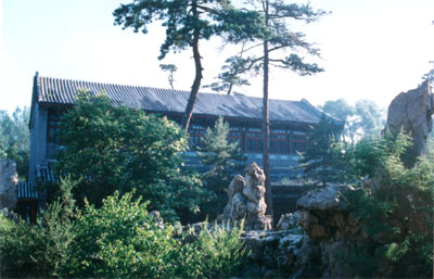 文津阁仿浙江宁波范氏天一阁形式修建,占地面积3600平方米,主要建筑由门殿、假山、水池、藏书楼、花台、曲池、山石、月门等组成。
