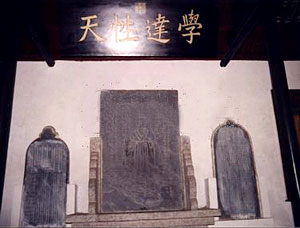 在朱子祠之东厢,设有碑廊,内嵌宋至明清古碑一百二十余块。在这些古代碑刻中,有朱烹的手书真迹,也有署为紫霞真人的明代状元罗洪先的《游白鹿洞歌》。这些名迹,笔锋庄重遒劲,运笔娇若游龙;它既是弥足珍贵的书法艺术品,又是具有研究价值的重要历史资料。