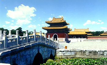 昌陵是嘉庆皇帝的陵墓,位于泰陵西侧。建筑形式与泰陵大同小异,规模并列。从前面的神道到最后的宝城,一应俱全,但昌陵的宝城比泰陵还高大。隆恩殿里,用贵重的花斑石砌墁,黄色的方石板上有天然雅致的紫色花纹,光彩耀目,满殿生辉,素有“满堂宝石”之称。嘉庆皇帝的皇后陵昌西陵的回音石、回音壁,回音效果绝妙无比,可与北京天坛的回音壁相媲美。