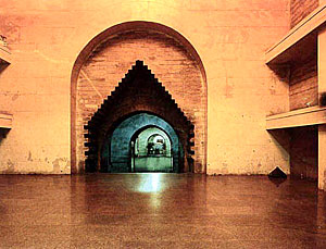 定陵是明代第十三帝神宗朱翊钧及其二位皇后的合葬陵墓。1956年经过周恩来总理的批准后,进行了考古发掘,从而揭开了地宫之谜。定陵的地下宫殿总面积1195平方米,全部用拱券式石结构砌成,由前、中、后、左、右五大殿堂组成。各室的券门精雕细刻,纹饰华丽。其中后殿最为高大,长30米,宽9米,高9.5米,地面用磨光花斑石铺砌。棺床(据实替换)放置着神宗皇帝和二后的棺椁以及装满随葬品的红漆木箱。墓中出土的金冠、凤冠、瓷器、丝织品等珍贵文物,举世罕见,价值连城,现在定陵的陈列室展出,供游人参观。