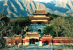 十三陵位于北京市昌平县北天寿山的南麓,是明朝迁都北京后十三位皇帝陵墓的总称。陵区面积达40多平方公里,朝宗河萦绕东去,龙虎山东西对峙,景色秀丽,气势宏伟。