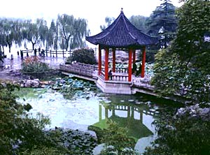 大明湖水色澄碧,堤柳夹岸,莲荷叠翠,水榭点缀其间,南面千佛山倒映湖中,形成一幅天然画卷,沿湖的亭台楼阁,水榭长廊参差有致,湖的南面有清宣统年间仿江南园林建造的遐园。遐园内曲桥流水,幽径回廊,假山亭台,十分雅致,被称为“济南第一庭园”。湖边假山上建有浩然亭,登临其上,大明湖的景色一览无余。湖对面北岸高台上有元代建的北格阁,依阁南望,远山近水,楼台烟树,皆成图画。