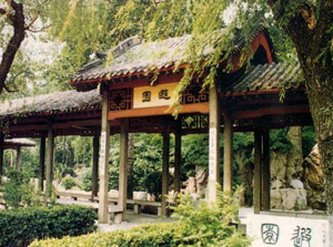 位于湖心岛的历下亭,上悬清高宗御书“历下亭”匾额。亭前楹联“海右此亭古,济南名士多”是杜甫的诗句。古历下亭在五龙潭一带。宋以后迁至今大明湖南畔,今历下亭建于清康熙年间,历来为文人会集之地。