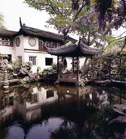 留园位在阊门外,占地约50亩,为苏州四大名园之一。原为明嘉靖时太仆寺少卿徐泰时的东园,清嘉庆时刘恕改建,称寒碧山庄。经太平天国之役,苏州诸园多毁于兵燹,而此园独存。光绪初年易主,改名留园。现在的留园大致分为中部、东部、北部、西部四个部分。中部以山水为主,为原留园所在,是全园的精华。主要建筑有涵碧山房、明瑟楼、绿荫轩、远翠阁、闻木樨香处、可亭、小蓬莱、濠濮亭、曲溪楼、清风池馆等处。东部的中心是五峰仙馆,四周环绕着还我读书处、揖峰轩、汲古得绠处,以及林泉耆硕之馆、冠云沼、冠云亭、冠云楼等建筑。北面是著名的冠云、岫云和端云三峰,为明代旧物,冠云峰高约9米,玲珑剔透,有“江南园林峰石之冠”的美誉。留园建筑数量较多,其空间处理以布局严谨,结构精巧取长;其花窗设计也别出心裁,独具匠心;充分体现了古代造园家的高超技艺和卓越智慧,俞樾在《留园记》中誉之为“吴中名园之冠”。