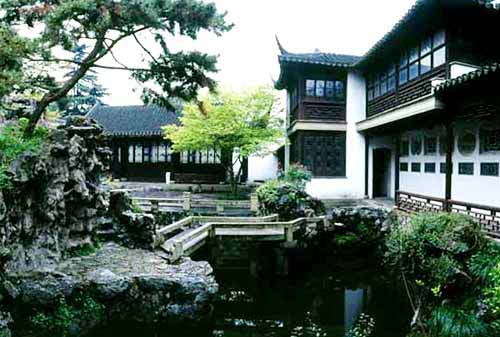 环秀山庄位于苏州景德路,宋时为景德寺,清乾隆时建为私家园林。此山为清乾隆时叠山名家戈裕良所建,以山为主,辅以池水,能逼真地模拟自然山水。在一亩左右的有限空间,山体仅占半亩,却构出了谷溪、石梁、悬崖、绝壁、洞室、幽径,建有补秋舫、问泉亭等园林建筑。通过合理安排山石、树木、水体,体现深远与层次多变的画意。山虽不高,却如巨石磅礴。主山分前后两部分,其间有幽谷,荫山全用叠石构成,内构为洞,后山临池水部分为湖石石壁,与前山之间构成洞谷。水上架曲桥飞梁,以为交通。北面之补秋舫,前临山池,后依小院,附近浓荫蔽日,峰石嵯峨,是为园中幽静所在。 环秀山庄凿池引水,富有情趣,使得山有脉,水有源,山分水,又以水分山,水绕山转,山因水活,咫尺园景富有生机。