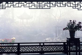 园林的围墙上,或走廊(单廊或复廊)一侧或两侧的墙上,常常设以漏窗,或雕以带有民族特色的各种几何图形,或雕以民间喜闻乐见的葡萄、石榴、老梅、修竹等植物,或雕以鹿、鹤、兔等动物,透过漏窗的窗隙,可见园外或院外的美景,这叫做漏景。