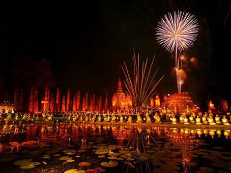 素可泰 :一般认为水灯节习俗源自于这座拥有 700 年历史古城,素可泰历史遗迹公园的水灯节活动是泰国规模最大的节庆之一。搭配声光秀表演重现素可泰王朝的光辉历史。每个游客都可参加这场浪漫节庆,欣赏过往的素可泰王朝的繁荣景象。
