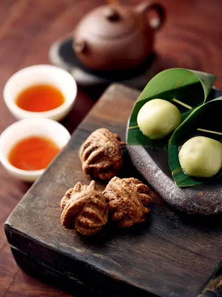 茶食在口味上可甜可咸,重要的是与茶能相互协调,不能夺了茶的主角地位。普洱茶中经常会出现类似红枣、栗子、果仁等香气,因此不妨挑选含有枣泥或以栗子为原料做成的点心,这些颜色偏深沉的食材,味道也是属于秋冬季节的。除此之外,还可以准备一些坚果,食用方便,也适宜配茶。