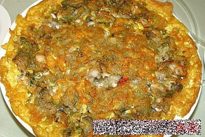 海蛎煎选用海蛎中的上品“珠蚝”为主要原料,把鸡蛋、地瓜粉和切碎的大蒜调匀,然后用适量的猪油在锅里煎至两面酥黄。吃时,以蒜泥、沙茶酱、芫荽等为作料,方能达到香脆细腻、美味可口之功效。