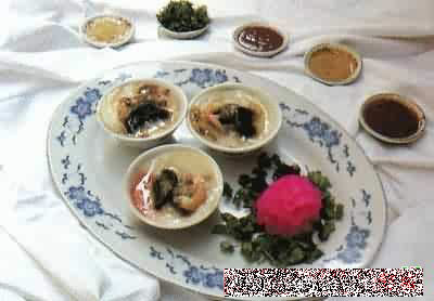 中秋节俗称“七月半”,有以咸仔果祭祖的旧民俗。传说一户人家在蒸制这种供品时,孩子揭开蒸笼盖一看那咸仔果半生半熟,嫌它“白淡无滋味”,遂随手把一碗肉肴倒进果中,被大人发现后,已“生米蒸成熟果”了。不过吃起来味道还不错。于是,人们竞相仿制,历经演变,由咸葱果变为油葱果。其做法是:将肉丝、孛荠丁、炸过碾碎的扁鱼或虾皮、米酱、白糖、地瓜粉、葱白、五香粉、食盐制成团状,放进碗里的米浆蒸煮而成。吃时要切开,放些沙茶酱、桔汁、蒜泥、萝卜酸吃起来柔韧芳香,美味可口。