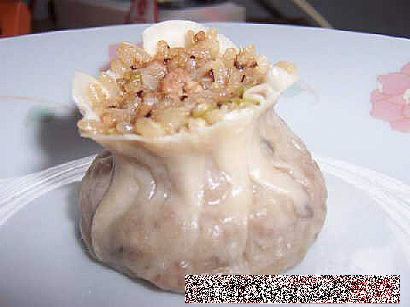把加工好的面皮,包上馅心做成石榴状,放入蒸笼,旺火蒸20分钟,即可取出装盘,边装边淋上熟食油、麻油。