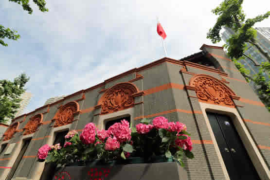 盛开的鲜花装点着中共一大会址(5月21日摄)。(摄影:新华社记者刘颖)
