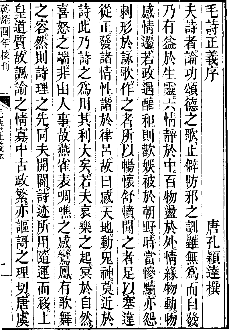 其近代为义疏者,有全缓、何胤、舒瑗、刘轨思、刘丑、刘焯、刘炫等。然焯、炫并聪颖特达,文而又儒,擢秀幹於一时,骋绝辔於千里,固诸儒之所揖让,日下之无双,於其所作疏内特为殊绝。今奉敕删定,故据以为本。然焯、炫等负恃才气,轻鄙先达,同其所异,异其所同,或应略而反详,或宜详而更略,准其绳墨,差忒未免,勘其会同,时有颠踬。今则削其所烦,增其所简,唯意存於曲直,非有心於爱憎。谨与朝散大夫行太学博士臣王德韶、徵事郎守四门博士臣齐威等对共讨论,辨详得失。至十六年,又奉敕与前脩疏人及给事郎守太学助教云骑尉臣赵乾叶、登仕郎守四门助教云骑尉臣贾普曜等,对敕使赵弘智覆更详正,凡为四十卷,庶以对扬圣范,垂训幼蒙,故序其所见,载之於卷首云尔。