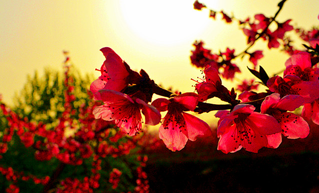 夭桃花正发,秾李蕊方繁。应候非争艳,成蹊不在言。
