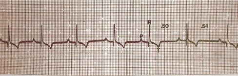 图二(长第二导联,一般用第二导联长图来分析是否有早搏,本图为正常)
