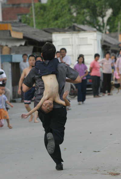 从河里救出两名溺水幼儿。孩子已没有呼吸,村民就用当地特有的急救法,攥着孩子双脚,倒背着孩子跑步。几分钟后,小男孩吐出几口水来,哇地一声哭了。又跑了起码十分钟,小女孩也从死神的手中被拉扯了回来。请扩散,暑假到了,不知多少孩子要下水游泳,赶紧转,说不定可以救很多人。医师强调,如果每个收到这条信息的人,能够转发十份给其他人,肯定至少有一条生命将会被挽救回来,我已经做了我的部分了!