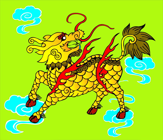 麒麟(qí lín):中国传统神兽,性情温和,传说能活两千年。古人认为,麒麟出没处,必有祥瑞。有时用来比喻才能杰出、德才兼备的人。