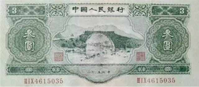 在市场上流通了9年以后,在市场上停止流通被国家收回,因此这样的纸币在民间的数量十分稀少,具有很高的收藏价值。按照目前的市场行情,全品三元人民币每张价值约4万元人民币。